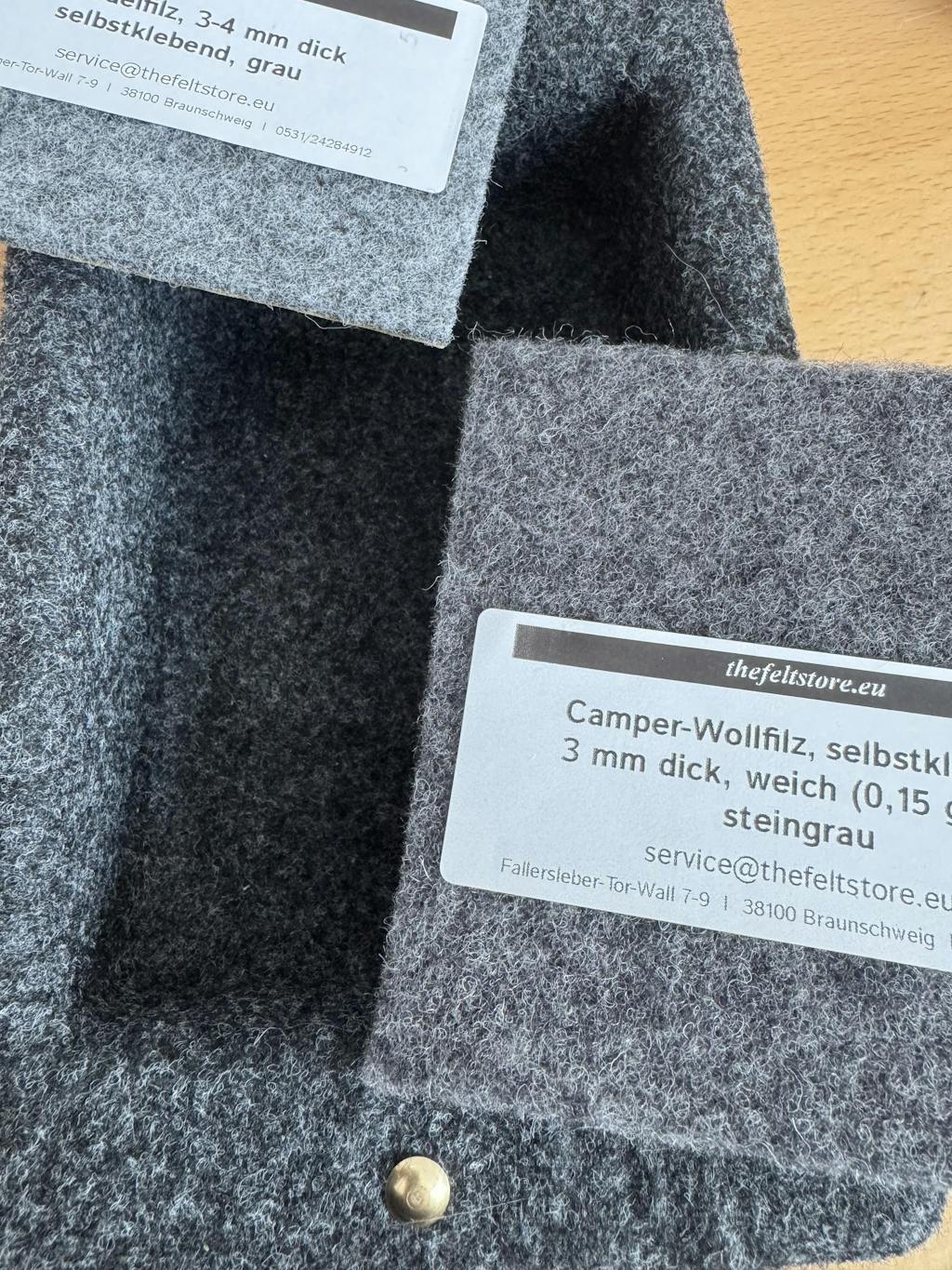 Hochwertiger Filz für den Camper- und Fahrzeugausbau – einfach zu verarbeiten, langlebig und stilvoll für ein professionelles Ergebnis.
