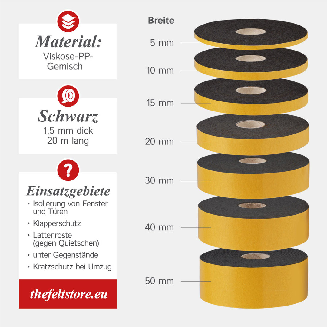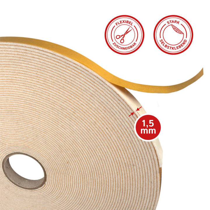 Filzband selbstklebend 15 mm breit, 1,5 mm dick, 20 m lang - vielseitiger Filzstreifen