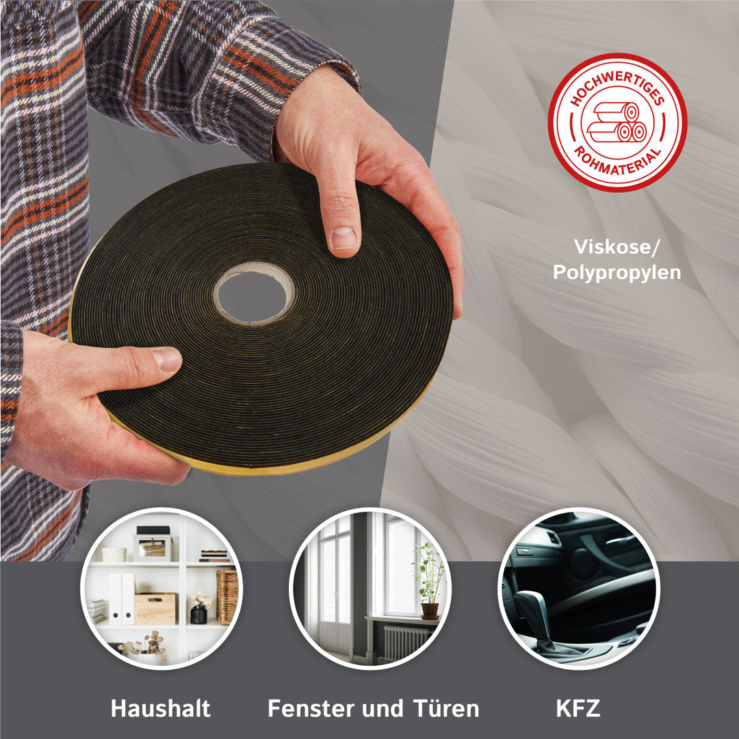 Das Filzband ist für eine Vielzahl von Anwendungen geeignet. Verwenden Sie es beispielsweise zur Dichtung, als Isolierung oder Klapperschutz. Sie können das Filzband einfach mit einer Schere auf die gewünschte Form und Größe schneiden.