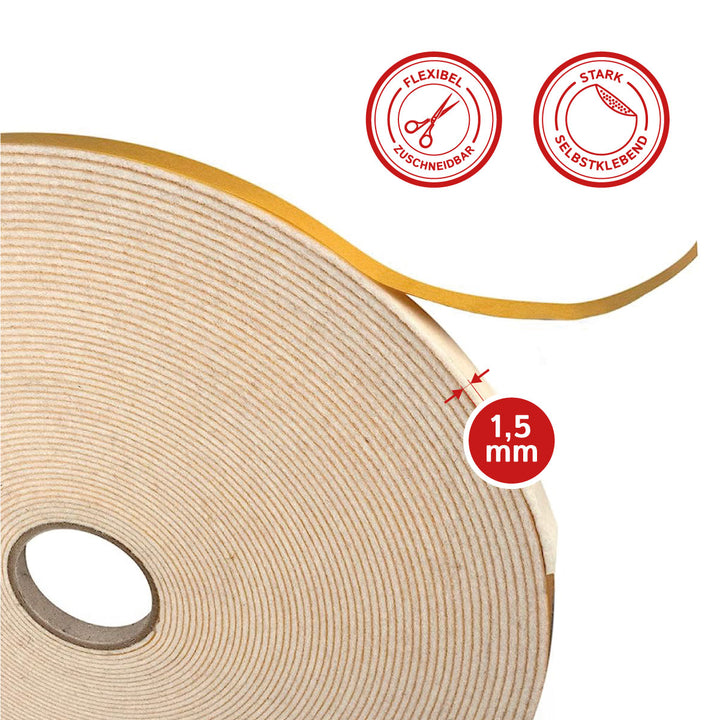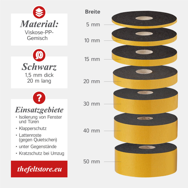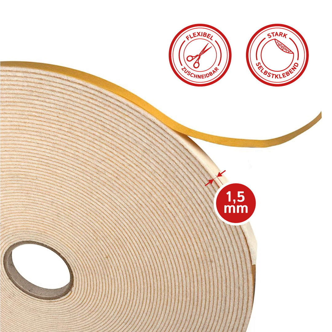 Filzband selbstklebend 5 mm breit, 1,5 mm dick, 20 m lang - vielseitiger Filzstreifen