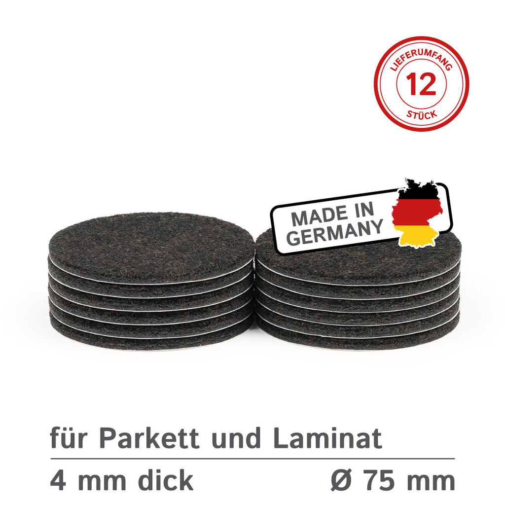 Filzgleiter selbstklebend rund 75mm, 5mm dick - 12 Stück