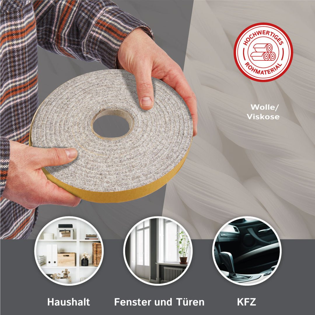 The felt tape is suitable for a variety of applications. Use it, for example, as a furniture glider for furniture with a larger footprint, as insulation, rattle protection or as a sealing tape. You can easily cut the felt ribbon to the desired shape and size with scissors.