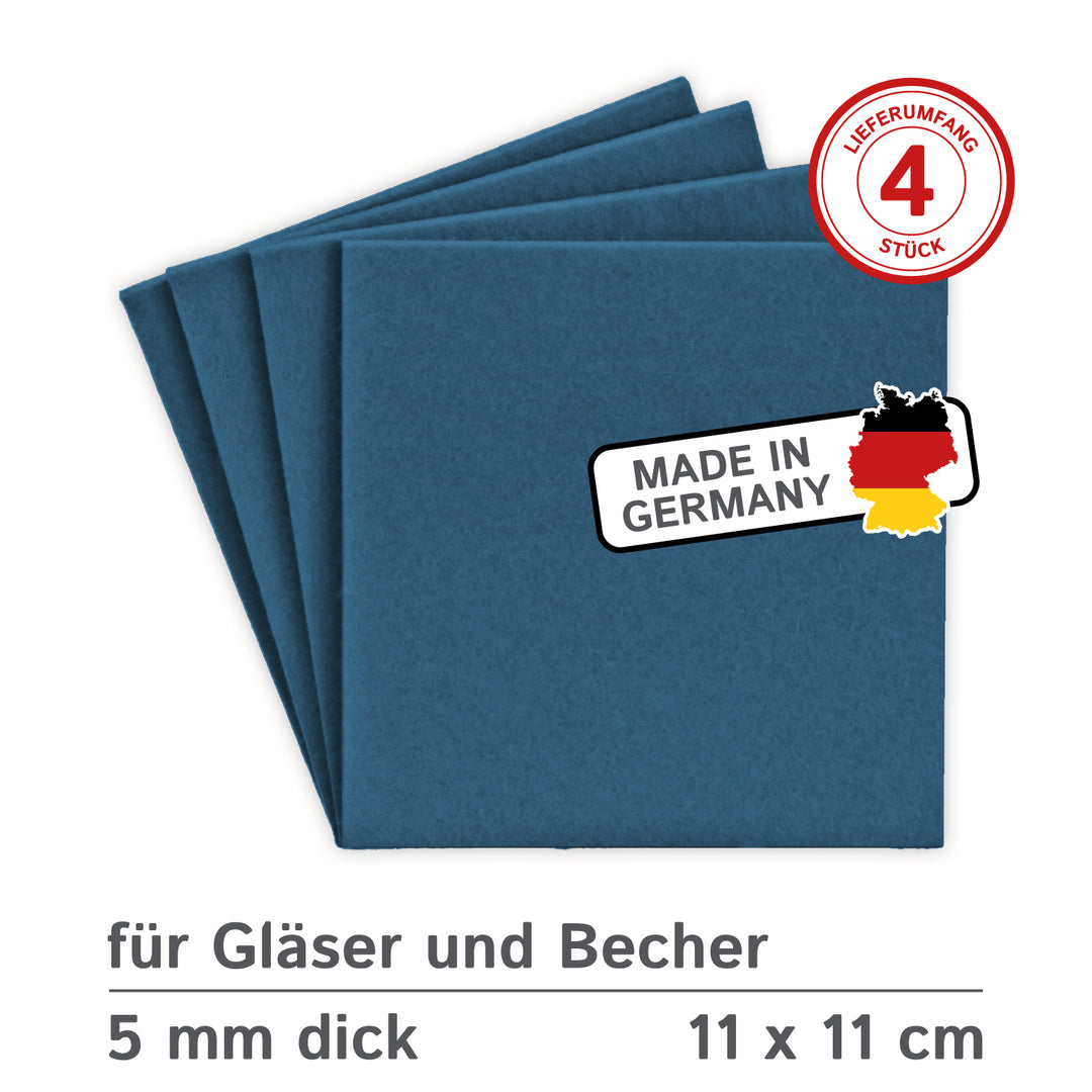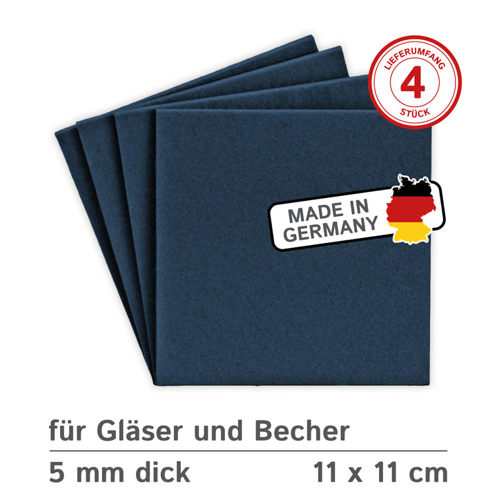 Coasters made of designer felt from filzbrand, square, 11 x 11 cm, 5 mm thick, 4 pieces, dark blue