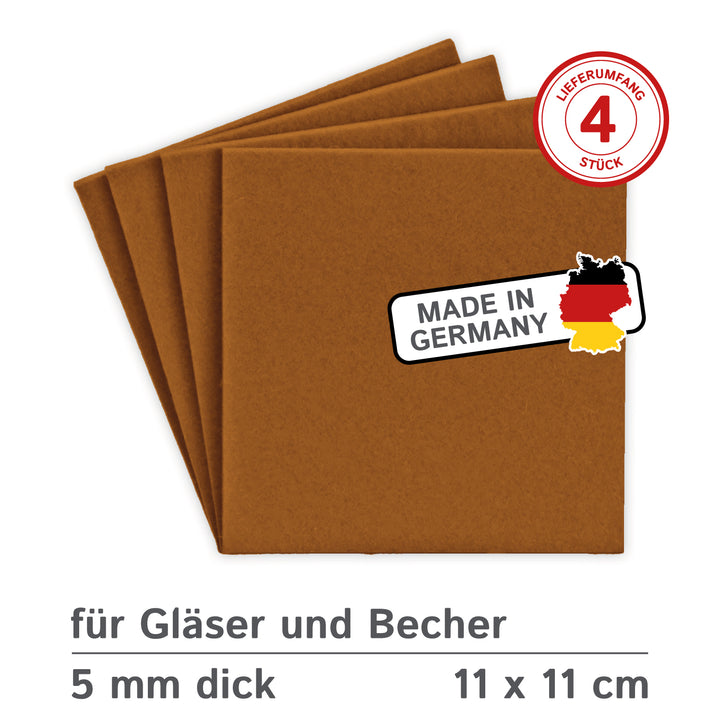 The high-quality, square coaster made of designer felt from "Filzbrand" is made from 100% merino wool and comes in many different colors