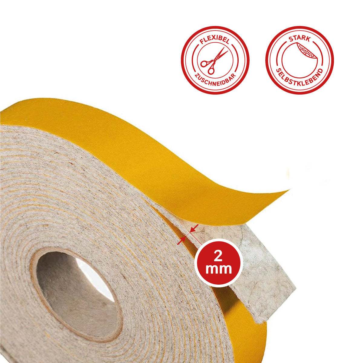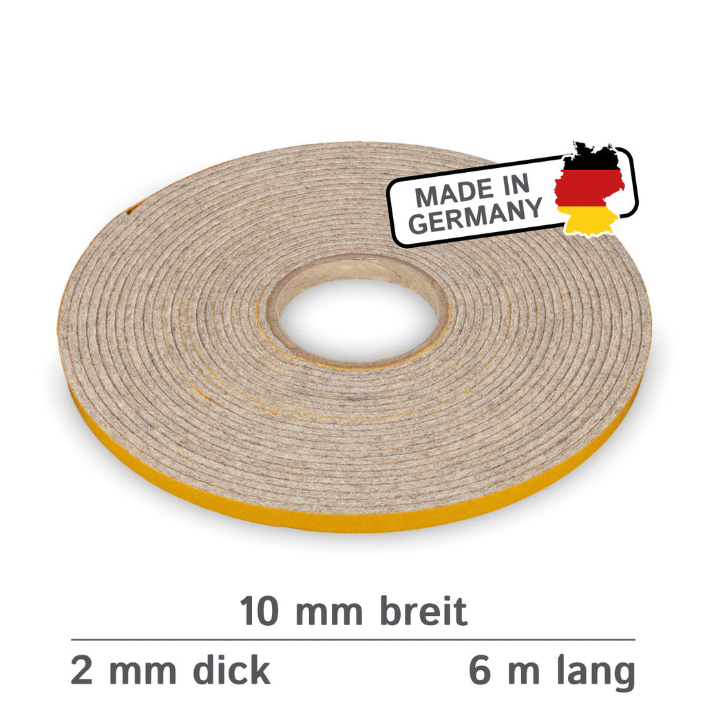 Dank der stark haftenden Selbstklebeseite lässt sich das Filzband schnell und sauber anbringen – ohne zusätzliches Werkzeug. Es eignet sich hervorragend als Möbelgleiter bei größerer Auflagefläche, als Filzstreifen zum Schutz von Böden, als Dichtband, Klapperschutz oder zur Wärme- und Kälteisolierung.