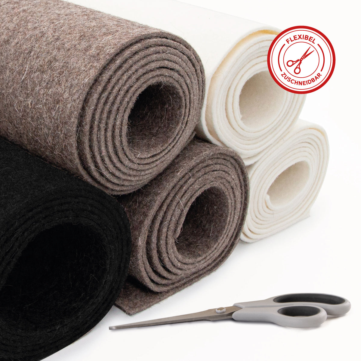 Unsere Wollfilz Meterware ist in den Farben Grau, Schwarz und Woll-Weiß erhältlich. Sie kann einfach gereinigt und gepflegt werden und ist umweltfreundlich sowie biologisch abbaubar, da sie aus natürlichen Fasern besteht.